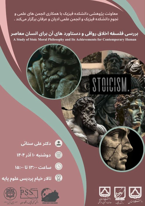 نشست علمی «بررسی فلسفه اخلاق رواقی و دستاوردهای آن برای انسان معاصر» به میزبانی معاونت پژوهشی دانشکده فیزیک و با همکاری انجمن علمی فیزیک، انجمن علمی ادیان و عرفان، و انجمن علمی نجوم برگزار شد. این برنامه با سخنرانی دکتر علی سنائی روز دوشنبه ۱۰ آذر ۱۴۰۴ از ساعت ۱۳:۰۰ تا ۱۵:۰۰ در تالار خیام پردیس علوم پایه برگزار گردید. در این نشست، دکتر سنائی به معرفی مبانی مکتب رواقی پرداخت و با ارائه تحلیلی از اصول اخلاقی این مکتب همچون فضیلت، خردورزی، کنترل درونی و پذیرش امور خارج از توان انسان به بررسی نقش و کارکرد آن در زیست اخلاقی و روانی انسان معاصر پرداخت. ایشان با اشاره به ریشههای تاریخی این فلسفه و اندیشههای متفکران مطرح آن، به کاربردهای امروزی رویکرد رواقی در مدیریت هیجانات، تصمیمگیری آگاهانه و مواجهه با دشواریهای زندگی نیز پرداختند. در پایان برنامه، فرصتی برای طرح پرسشها و گفتوگوی دانشجویان فراهم شد و حاضرین دیدگاههای خود را درباره تأثیر رواقیگری بر زندگی امروز و اهمیت آن در مواجهه با چالشهای اخلاقی و فردی مطرح کردند.